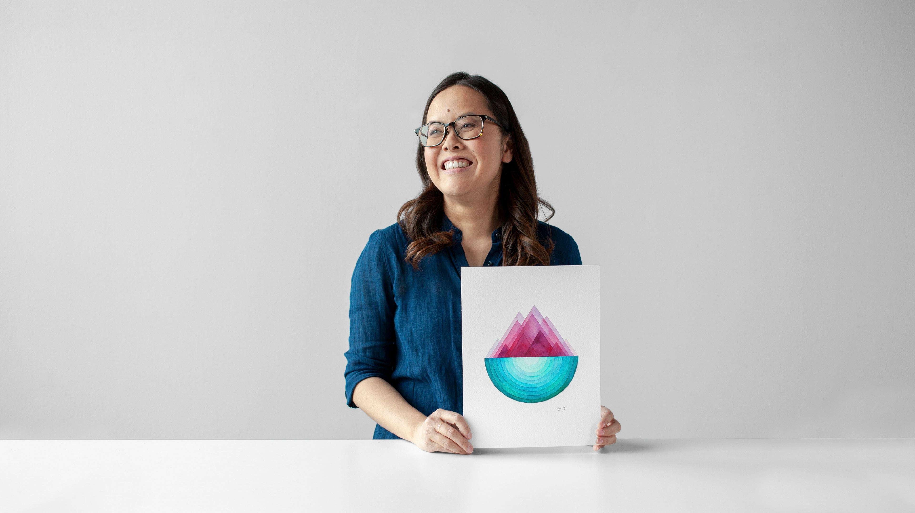 In my work I explore the use of color, lines, and geometry to create movement, depth, and wonder. I use the transparency of watercolor to create beauty in the seemingly mundane-ness of everyday shapes. I still take a lot of my inspiration from math, but these days also from architecture, the natural world, and paper arts. I like to produce visually mesmerizing pieces that challenge and inspire people to appreciate watercolor in new and different ways